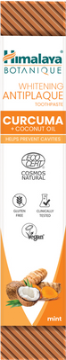 Zubná pasta Himalaya Botanique Whitening Antiplaque Curcuma & Coconut Oil je ideálnou voľbou pre prirodzené bielenie zubov a komplexnú starostlivosť o ústnu dutinu. Vďaka svojmu jedinečnému zloženiu s kurkumou, mätou a kokosovým olejom poskytuje účinné čistenie zubov, osviežuje dych a zároveň chráni zuby pred zubným povlakom a kazom. Kurkuma bojuje proti tvorbe zubného plaku a kameňa, zatiaľ čo kokosový olej dodáva zubom prirodzený lesk.