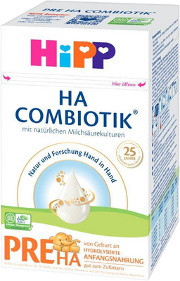 HiPP HA 1 Combiotik® Špeciálna dojčenska výživa od narodenia 600 gVšetko o produkteDoplňujúce informácieHodnotenie produktuŠpeciálne vyvinutá receptúra s jemne stráviteľnými bielkovinami a jedinečnou kombináciou cenných zložiek je obzvlášť šetrná k citlivému imunitnému systému vášho dieťatka. Výživa HiPP HA1 Combiotik® je ľahko stráviteľná a sýta. Môže sa podávať od narodenia. Receptúra je novo upravená: obsahuje iba laktózu z cukrov.