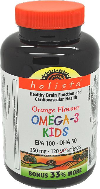 Holista OMEGA-3 pre deti 250mg 120 softgel kapsúl s pomarančovou príchuťou 120 ksVšetko o produkteDoplňujúce informácieHodnotenie produktuOMEGA-3 pre deti ponúka vyváženú zmes EPA a DHA. Deti potrebujú omega-3 mastné kyseliny EPA (eikozapentaénová kyselina) a DHA (dokozahexaénová kyselina), pre správny telesný a duševný rozvoj. OMEGA-3 pre deti má 100 mg EPA a 50 mg DHA, čo predstavuje ideálnu zmes pre rastúce deti. OMEGA-3 je vyrábaný unikátnym patentovaným procesom, zaisťujúci krištáľovo čistý rybí tuk, bez kontaminantov, ako sú ťažké kovy. OMEGA-3 je jediný rybí olej na svete, ktorý dosiahol najvyšší štandard USP, overenie kvality a konzistencie rybieho tuku.