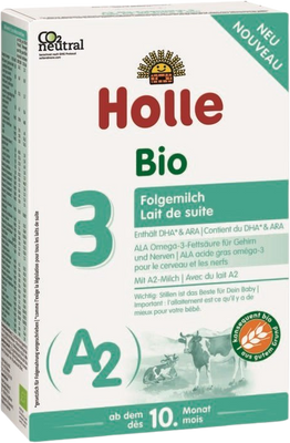 HOLLE Bio – A2 pokračovacie mlieko 3. od 10 mesiacov veku s ALA Omega 3 mastnými kyselinami na podporu zdravia a nervového systému. Obsahuje DHA & ARA, vybrané srvátkové bielkoviny a zmes kazeínov. Je vhodné aj ako doplnok stravy pri dojčení. Viac informácií