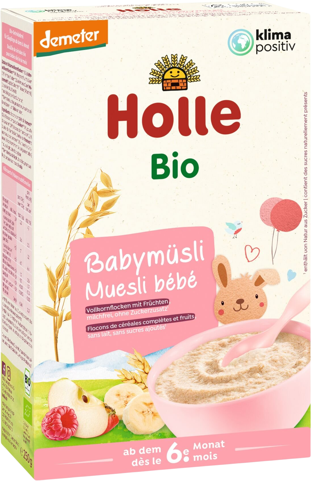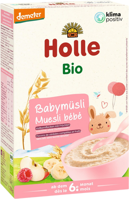 Holle Detská celozrnná kaša müsli instantná nadväzujúca na výživový prášok na báze obilnín pre dojčatá a malé deti od ukončeného 6. mesiaca ako súčasť zmiešanej stravy.