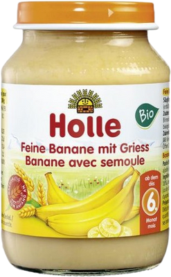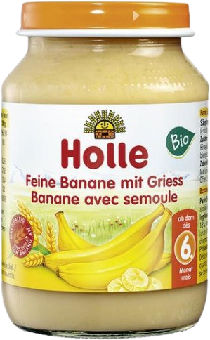Detská výživa banán a krupica od 6. mesiaca. Výživa v skle je vhodná keď ste mimo domova alebo máte málo času. Kvalitné ovocie a pre detské jazýčky atraktívna chuť. Bio výživa je vyrobená zo starostlivo vybraného ovocia najvyššej kvality, ktoré boli vypestované spôsobom ekologického hospodárstva. Viac informácií