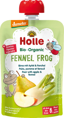 Holle Fennel Frog Bio pyré hruška jablko fenikel 100 gVšetko o produkteDoplňujúce informácieHodnotenie produktu