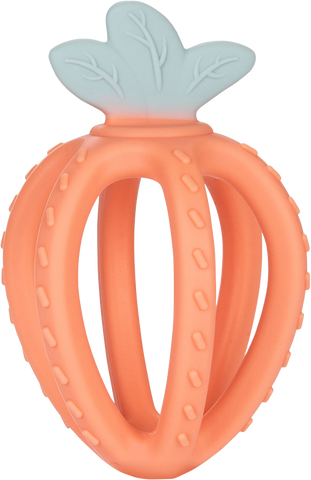 Hryzačka silikónová senzorická 3D - jahoda oranžová