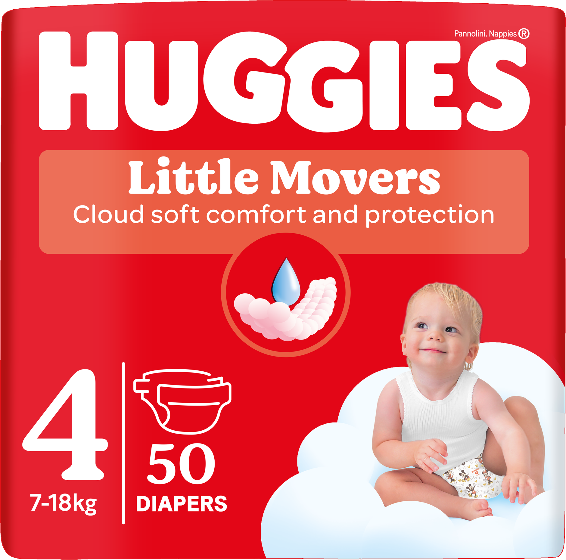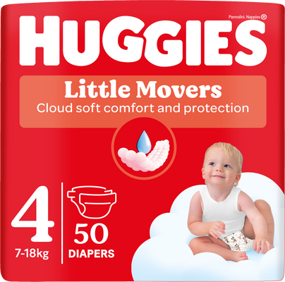 Huggies® Little Movers plienky 4 (7 - 18 kg) 50 ksVšetko o produkteDoplňujúce informácieHodnotenie produktu