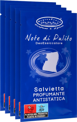 HygienFresh Antistatické parfúmované obrúsky do sušičky s vôňou Note di pulito 5 ksVšetko o produkteDoplňujúce informácieHodnotenie produktuDoprajte svojej bielizni dokonalú jemnosť a dlhotrvajúcu sviežosť. Antistatické obrúsky do sušičky HygienFresh s jemnou vôňou Note di Pulito prevonia každý kus oblečenia a uľahčí sušenie. Špeciálne vyvinuté účinné látky prenikajú hlboko do textilných vlákien, zanechávajú oblečenie mäkké, voňavé a ľahko sa žehlí, zabraňujú žmolkovaniu a znižujú statický náboj.