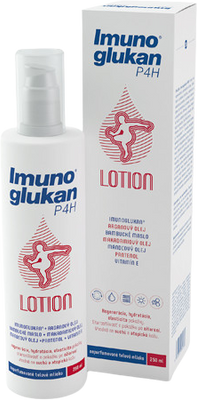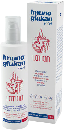 Imunoglukan P4H® lotion je telové mlieko vhodné na regeneráciu, ochranu a udržiavanie dobrého stavu kože. Jeho hlavnou účinnou zložkou je prírodný Imunoglukan®, získavaný patentovanou technológiou. Imunoglukan® predstavuje komplex biologicky aktívnych polysacharidov s majoritným zastúpením beta-glukánu pleuran, ktorý je známy ako aktivátor dôležitých kožných buniek.