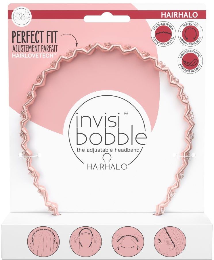 Invisibobble Hairhalo Pink Sparkle Nastaviteľná čelenka do vlasovVšetko o produkteDoplňujúce informácieHodnotenie produktuUnikátny špirálovitý dizajn čelenky zaisťuje jemnejší tlak na hlavu, vďaka čomu je nosenie neuveriteľne pohodlné. Čelenka je nastaviteľná, je možné ju ohnúť v miestach, kde je príliš tesná alebo naopak príliš voľná. Navyše nezanecháva na vlasoch nepekný otlak.