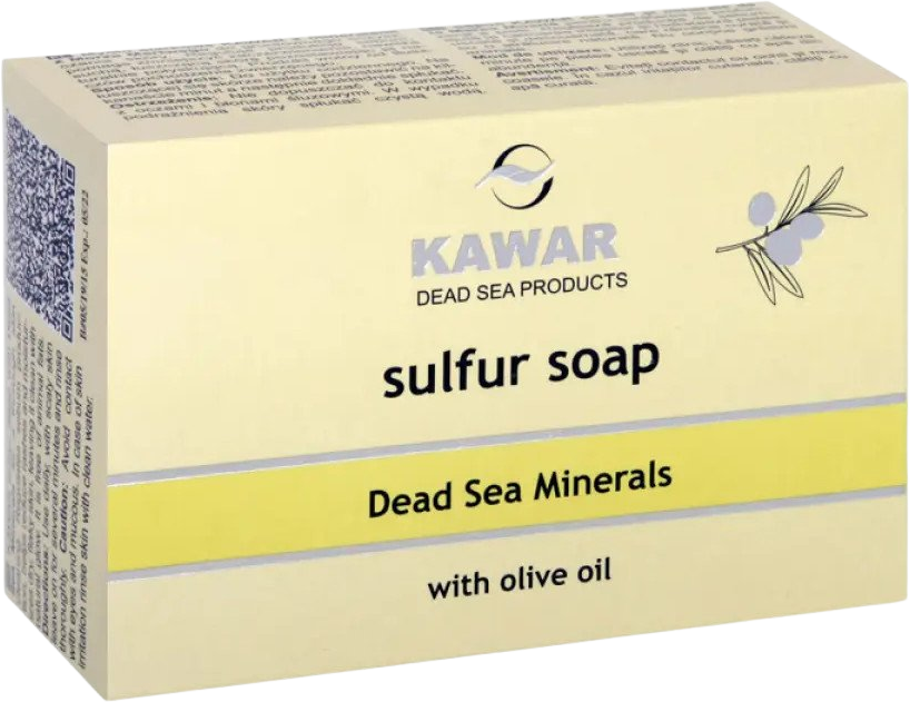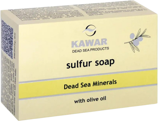 Kawar Sírové mydlo s minerálmi z Mŕtveho mora 120 gVšetko o produkteDoplňujúce informácieHodnotenie produktu- Síra pomáha regulovať produkciu kožného mazu, redukovať vyrážky a zmierňovať zápaly pokožky