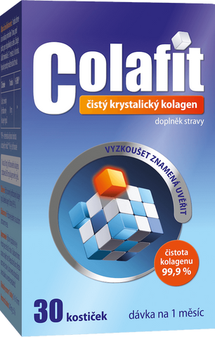 Colafit je čistý kryštalický kolagén, čistoty 99,9%, ktorý má veľmi priaznivý vplyv na pokožky. Obsiahnutý vitamín C navyše prispieva k tvorbe kolagénu pre normálnu funkciu chrupaviek, kostí, zubov a ďasien. Balenie: 60x Colafit kocky a 60x tabletky s vitamínom C.