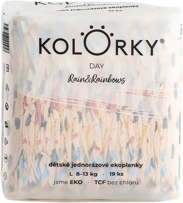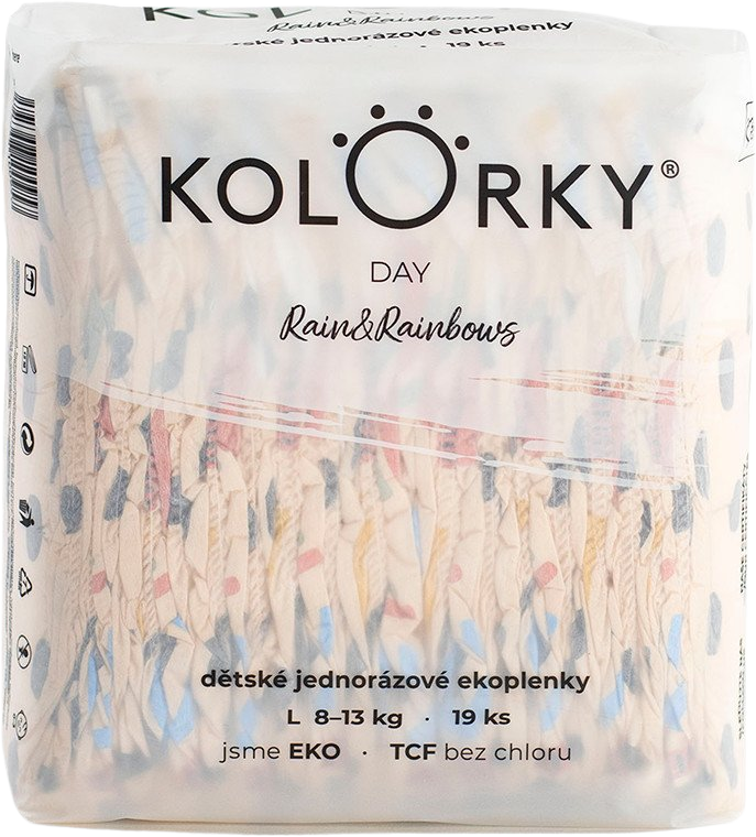 KOLORKY DAY - déšť a duhy - L (8-13 kg) - 19 ks - jednorázové eko plenky