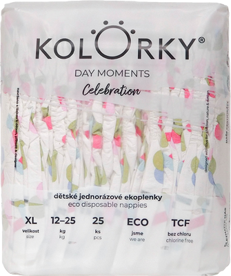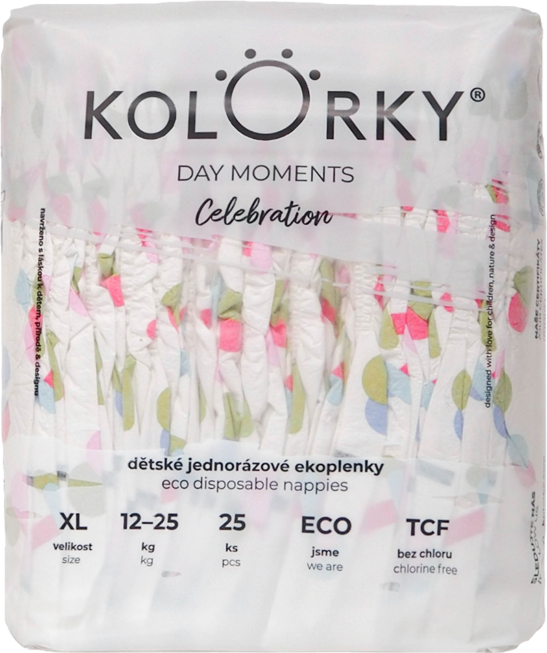 Kolorky DAY MOMENTS Oslava veľ. XL (12-25 kg) 25 ksVšetko o produkteDoplňujúce informácieHodnotenie produktuDENNÉ MOMENTY FARBY sú veľmi tenké a sú určené pre každú chvíľu s vašimi najmenšími. Vďaka svojmu strihu neobmedzujú pohyb dieťaťa. Sú vyrobené z prírodných a obnoviteľných materiálov, neobsahujú parfumy, ftaláty a iné škodlivé látky.