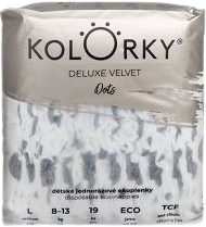 KOLORKY sú vyrobené z prírodných a obnoviteľných materiálov, ktoré sú bielené horúcim vzduchom úplne bez použitia chloru metódou TCF (total chlorine free), tým sú šetrné k zdraviu a pokožke vášho bábätka.
