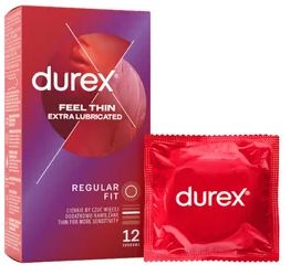 Durex Feel Thin Extra Lubricated sú zdravotnícke pomôcky určené na zabránenie počatia a ochranu pred pohlavne prenosnými chorobami. Starostlivo si prečítajte návod na použitie vnútri krabičky, najmä ak používate kondómy na análny alebo orálny sex. Kondóm je iba na jedno použitie. Žiadna antikoncepčná metóda vám nemôže poskytnúť 100 % ochranu pred otehotnením, HIV či inými pohlavne prenosnými chorobami. Uchovávajte mimo dosahu detí.