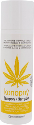 výživný a regeneračný vlasový šampón pre deti i dospelých (vrátane dojčiat, batoliat, tehotných žien a dojčiacich matiek) pri lupienke, nadmernom šúpanie kože, seboroickej dermatitíde vo vlasoch, obsahuje olej zo semien technického konope (obohatený vitamíny A, C, E) s prirodzenými protialergickými, protibakteriálnymi a protizápalovými vlastnosťami, intenzívne prestupuje do všetkých vrstiev kože a zmierňuje nepríjemné svrbenie a šúpanie kože, spevňuje tvar a štruktúru, obmedzuje lámavosť a zväčšuje objem vlasov, obnovuje prirodzený lesk a zabraňuje ich vypadávaniu, je bez parabénov, psychotropných a návykových i ďalších neprirodzených chemických látok a syntetických prímesí a nie je parfumovaný.