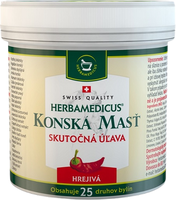 Konská masť kombinuje uvoľňujúce účinky silíc s priaznivým pôsobením extraktov z bylín. Vyvážený obsah aktívnych látok zaručuje široký a silný účinok. Hrejivá verzia Konskej masti pôsobí ako účinný preventívny prostriedok na prehriatie pohybového aparátu. Hodí sa pre všetky vekové kategórie.