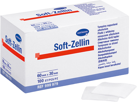 SOFT-ZELLIN tampón nesterilný štvorec impregnovaný alkoholom, 100 ks