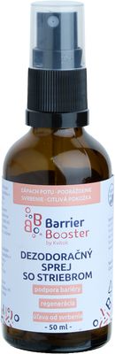 Kvitok Barrier Booster, Dezodorant v spreji so striebrom 50 mlVšetko o produkteDoplňujúce informácieHodnotenie produktuBráni vzniku baktérií spôsobujúcich zápach, ale neobmedzuje prirodzené funkcie pokožky, ako je potenie. Vďaka svojmu jemnému zloženiu je vhodný aj pre tú najcitlivejšiu pokožku a neobsahuje alkohol, hliníkové soli, sódu bikarbónu ani alergény.
