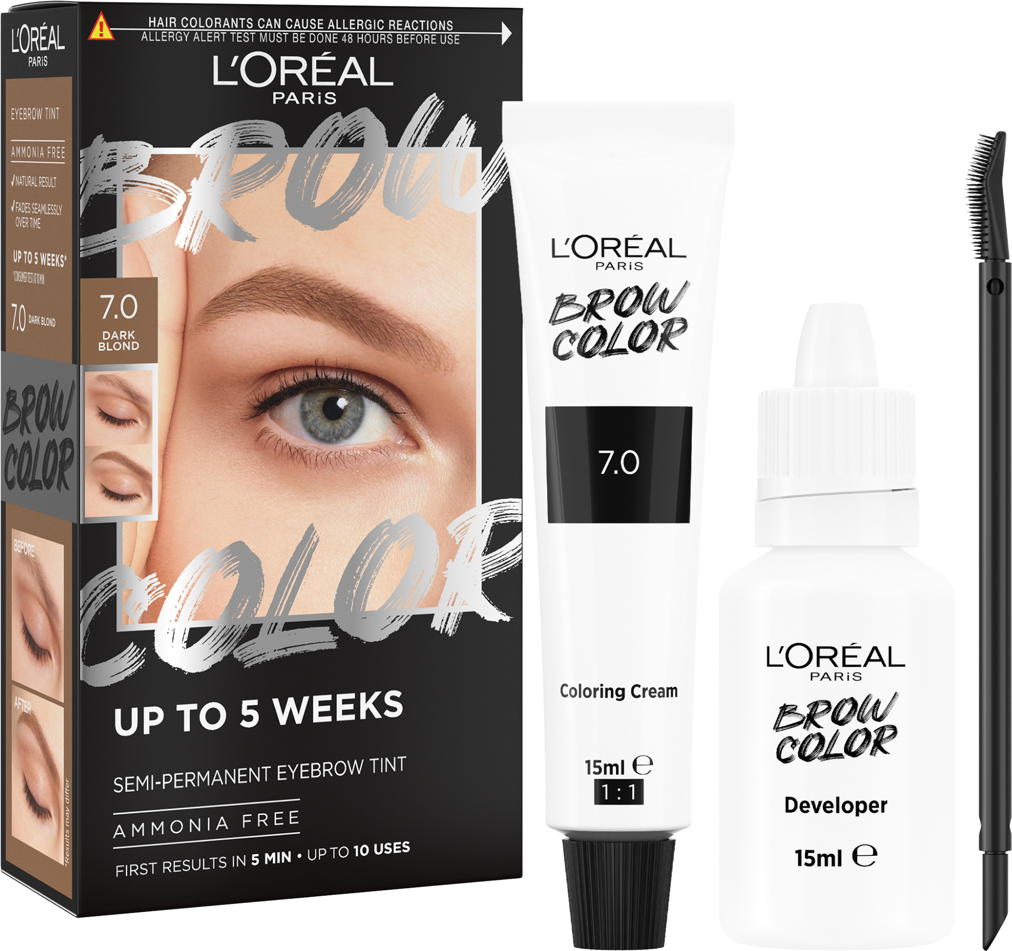 L'Oréal Paris Brow Color 7.0 Dark Blond semi-permanentná farba na obočieVšetko o produkteDoplňujúce informácieHodnotenie produktuSemi-permanentá farba na obočie. Doprajte si dlhotrvajúci výsledok tejto farby na obočie ešte dnes a nestrácajte čas opätovným nanášaním make-upu. Zažite transformáciu obočia s touto inovatívnou kombináciou make-upu a farby na vlasy!