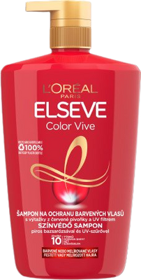 L'Oréal Paris Elseve Elseve Color Vive šampon, 1000 mlVšetko o produkteDoplňujúce informácieHodnotenie produktuAko predĺžiť životnosť farby na vlasy? Šampón Elseve Color Vive obsahuje elixír z červenej pivonky a UV filtre, chráni a vyživuje farbené a melírované vlasy. O farbené vlasy sa stará už počas umývania. Pôsobí na predĺženie životnosti farby a zanecháva vlasy hodvábne lesklé.