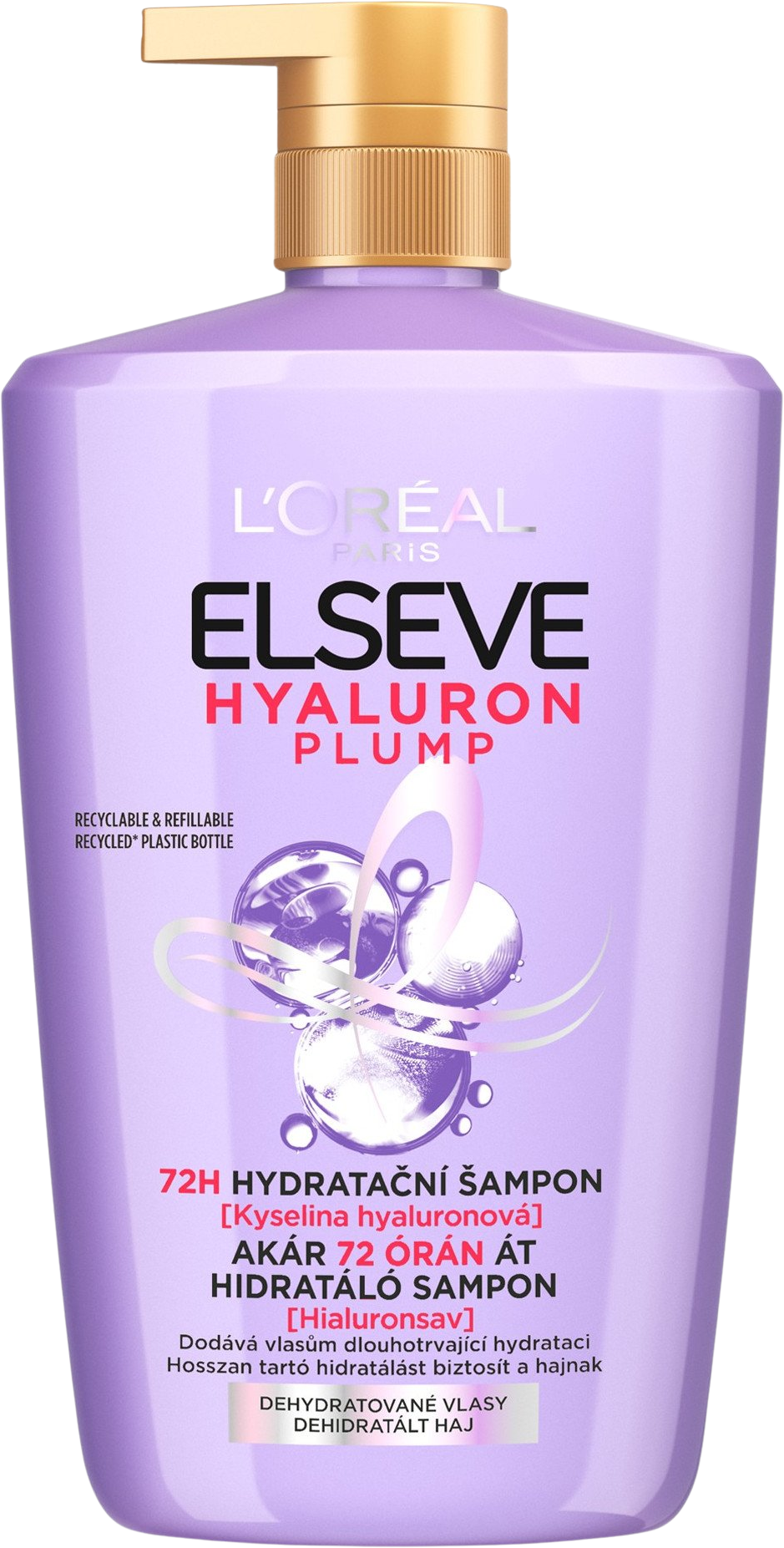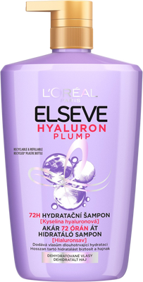 L'Oréal Paris Elseve Hyaluron Plump 72H hydratačný šampón s kyselinou hyalurónovou, 1000 mlVšetko o produkteDoplňujúce informácieHodnotenie produktuVlasy ako bez života? To je prejav ich dehydratácie. Hydratačný šampón Elseve Hyaluron Plump okamžite pokryje vlasové kutikuly, hydratuje až na 72 hodín**, pre lesklejšie, 10x viac hydratované** a revitalizované vlasy bez zaťaženia. Kyselina halurónová sa nachádza prirodzene v tele, je schopná viazať až 1000x viac vody, než sama váži a pomáha vlasom znovu dodať hydratáciu.