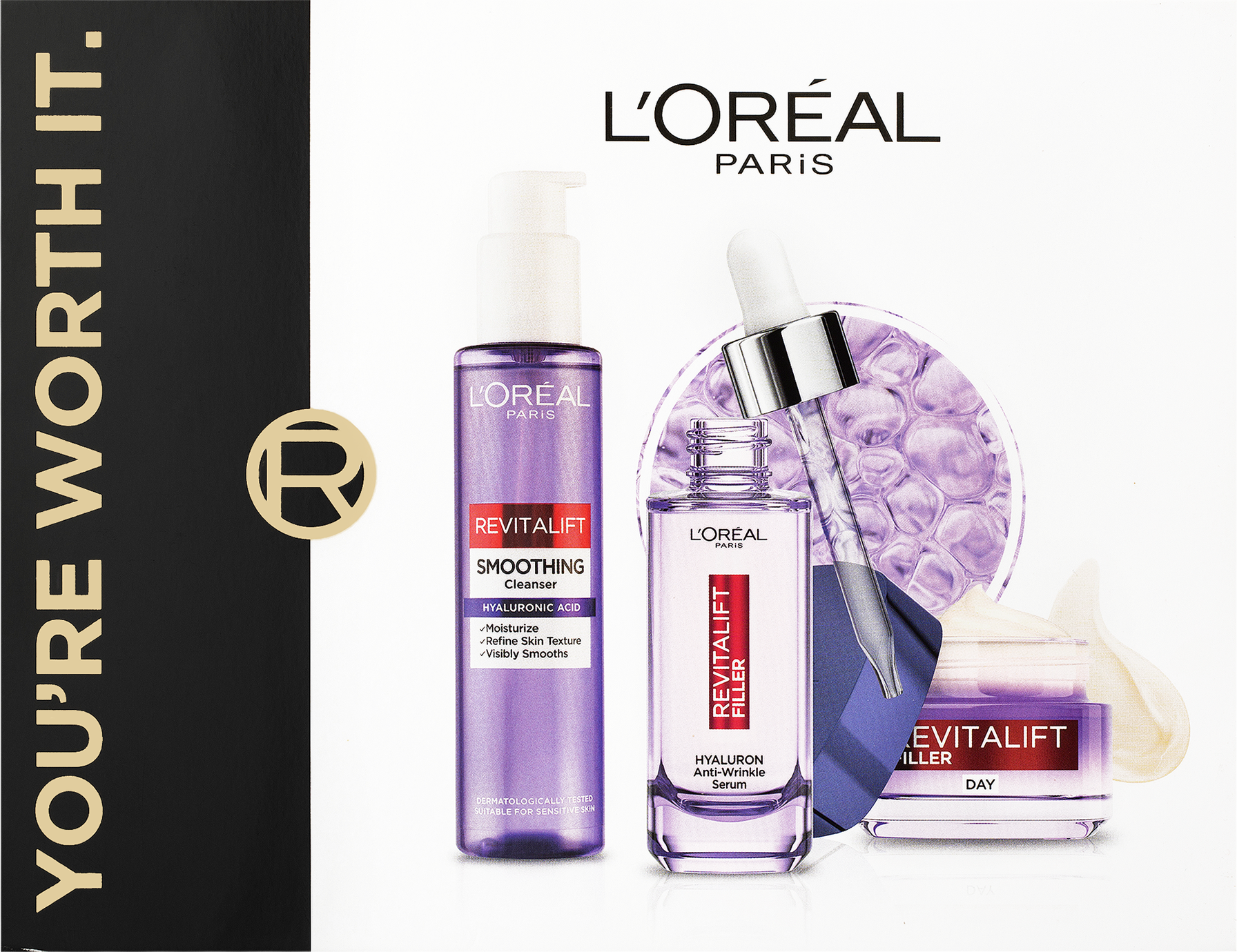 L'Oréal Paris Revitalift Filler je teraz k dispozícii v darčekovom balení. Doprajte svojej pleti potrebnú hydratáciu s týmto vyhladzujúcim čistiacim gélom s kyselinou hyalurónovou, ktorá pomáha hydratovať pleť pre jej hladší a plnší vzhľad.