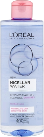 L'Oréal Paris Skin Expert micelárna voda 400 mlVšetko o produkteDoplňujúce informácieHodnotenie produktuOdličuje: Odstraňuje make-up z tváre, očí a pier v jedinom jemnom kroku bez drhnutia a oplachovania.
