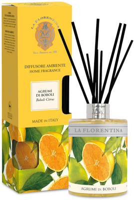 Difuzér La Florentina Agrumi di Boboli zachytáva podstatu nádherných záhrad Florencie a spája prírodné krásy a kultúrne bohatstvo v jednom zmyslovom zážitku. Bohatá a podmanivá vôňa so sviežimi a sladkými tónmi pomarančového kvetu a jazmínu. Viac informácií