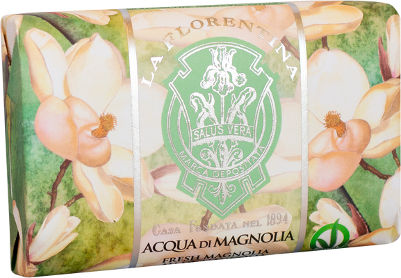 La Florentina Mydlo Acqua di Magnolia 200 gVšetko o produkteDoplňujúce informácieHodnotenie produktuExkluzívne, starostlivo vyrobené domáce mydlo s prírodnými výťažkami z magnólie. Špeciálne rastlinné zloženie obohatené o organický olivový olej, organické výťažky a bambucké maslo. Mydlo je balené v papierovom obale. Vo výrobku a jeho balení nie sú použité žiadne živočíšne produkty.