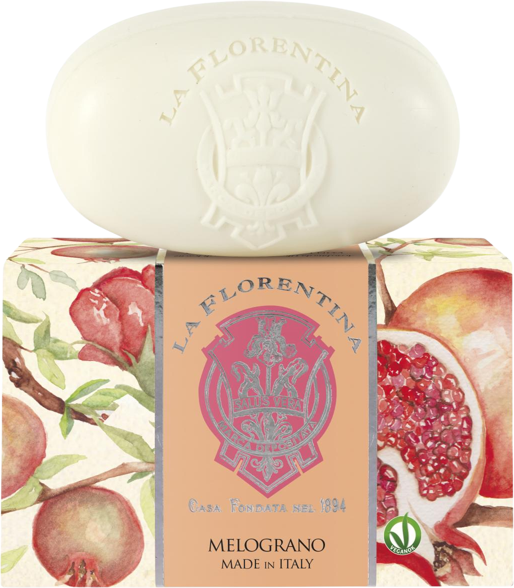 Toskánske ručne vyrábané mydlo "Granátové jablko" Melograno. Toskánske ručne vyrábané mydlo, má extra hydratačný a krémový účinok.