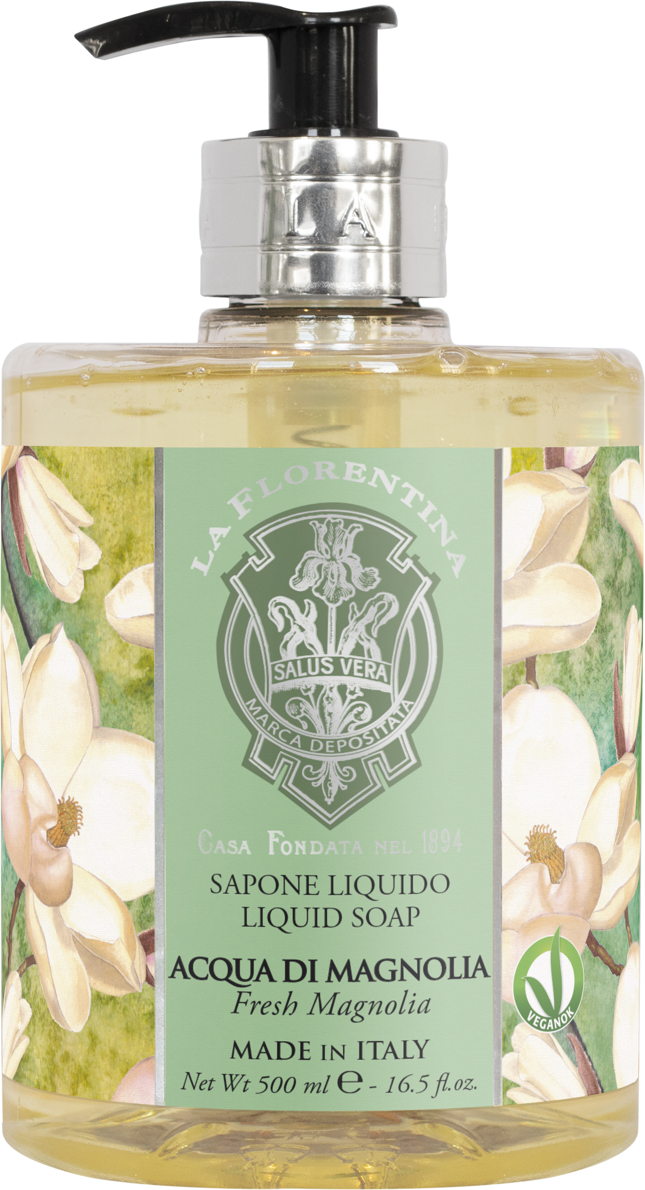 La Florentina Tekuté mydlo Acqua di Magnolia 500 mlVšetko o produkteDoplňujúce informácieHodnotenie produktuLa Florentina Acqua di Magnolia tekuté mydlo jemne, ale účinne čistí pokožku rúk a poskytuje im potrebnú výživu a starostlivosť. Má certifikát VEGANOK - vo výrobku a jeho obale sa nepoužívajú žiadne živočíšne produkty.