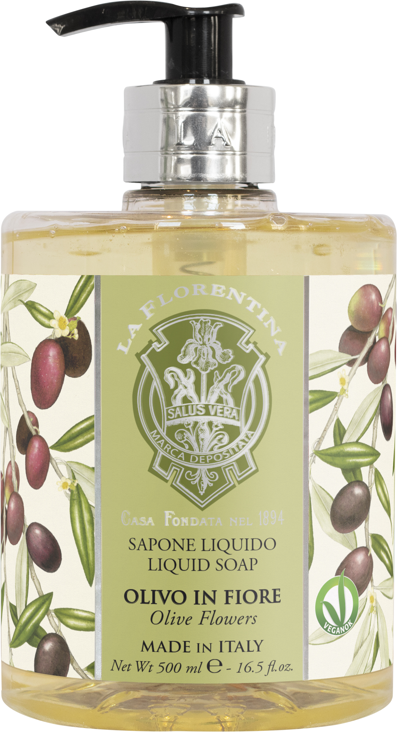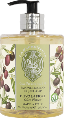 La Florentina Tekuté mydlo Olivo in Fiore 500 mlVšetko o produkteDoplňujúce informácieHodnotenie produktuLa Florentina Olivo in Fiore tekuté mydlo jemne, ale účinne čistí pokožku rúk a poskytuje im potrebnú výživu a starostlivosť. Má certifikát VEGANOK - vo výrobku a jeho obale sa nepoužívajú žiadne živočíšne produkty.