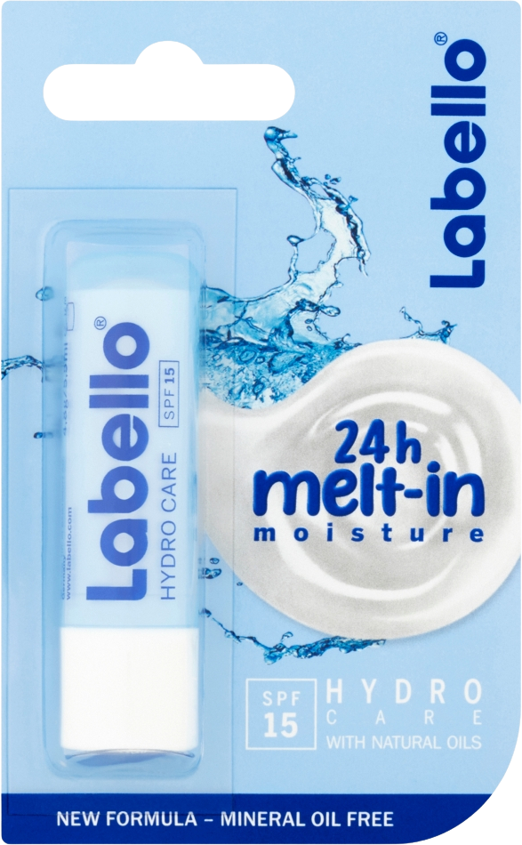 Labello Hydro Care Ošetrujúci balzam na peryVšetko o produkteDoplňujúce informácieHodnotenie produktuZloženie má príjemne hladkú textúru, ktorá sa ihneď rozpustí na perách a hydratuje ich celých 24 hodín*. OF 15 chráni pery pred škodlivým UV žiarením.