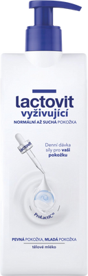 Lactovit Original Telové mlieko Vyživujúce s lactosomas 400ml 400 mlVšetko o produkteDoplňujúce informácieHodnotenie produktuTelové mlieka Lactovit sú obohatené o mliečnu zložku Protein Calcium, ktorá vďaka obsahu aktívnych látok zaisťuje hĺbkové pôsobenie základných zložiek mlieka (vitamíny, proteíny, minerály a lipidy) v pokožke. Vďaka svojej veľkosti a štruktúre prenikne aj do najhlbších vrstiev pokožky a vyživuje ju zvnútra. Táto inovatívna technológia účinkuje vo všetkých fázach životného cyklu pokožky. Výsledkom je viditeľne jasnejšia a svieža pleť.