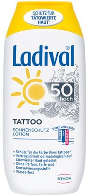 Ladival TATTOO SPF 50 mlieko na opalovanie 200 mlVšetko o produkteDoplňujúce informácieHodnotenie produktuIntegrovaná UV ochrana môže pomôcť prevencii proti predčasnému a slnkom vyvolanému blednutiu tetovania a pomáha zachovať farebnú intenzitu tetovania.