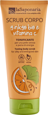 laSaponaria Telový peeling s BIO ginkgo bilobou a vit. C 200 mlVšetko o produkteDoplňujúce informácieHodnotenie produktuTelový peeling laSaponaria s organickým ginkom bilobou a vitamínom C má hladkú krémovú konzistenciu, ktorá ľahko odstraňuje odumreté kožné bunky a zanecháva pokožku hodvábne jemnú a žiarivo sviežu. Príjemne povzbudzujúca citrusová vôňa poteší zmysly a dodá sviežosť a energiu do každého dňa. Jeho prírodné zloženie je vhodné aj pre vegánov a pýši sa certifikátom BDIH Cosmos Natural.