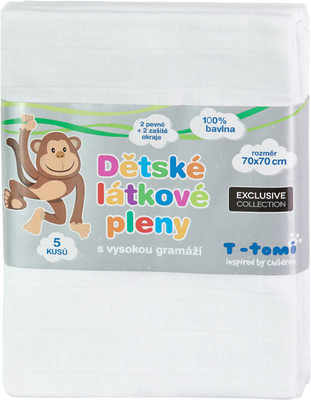 Detské látkové plienky T-tomi z vysokogramážnej čistej bavlny sú vyrobené klasickou technológiou tkania v dutinnej väzbe, čo zaručuje zvýšenú savosť a mäkkosť týchto látkových plienok. Viac informácií