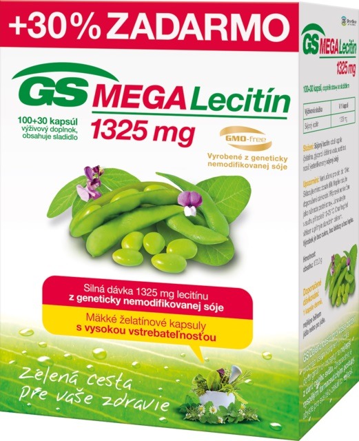Darčekové balenie GS Megalecitin 1325 mg obsahuje megadávku lecitínu v mäkkých želatínových kapsulách s vysokou vstrebateľnosťou. Vyrobené zo sóje bez genetickej modifikácie.