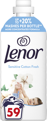 Lenor Aviváž, Sensitive Cotton Fresh, 59 praní, 1239 mlVšetko o produkteDoplňujúce informácieHodnotenie produktuHypoalergénny avivážny prostriedok Lenor Sensitive Cotton Fresh poskytuje jemnú vôňu bavlny a nebeskú mäkkosť. Zloženie je určené pre citlivú pokožku, dermatologicky testované (testované na pokožke pri kontakte s vypranou tkaninou) a certifikované Európskym centrom pre výskum alergií (ECARF).