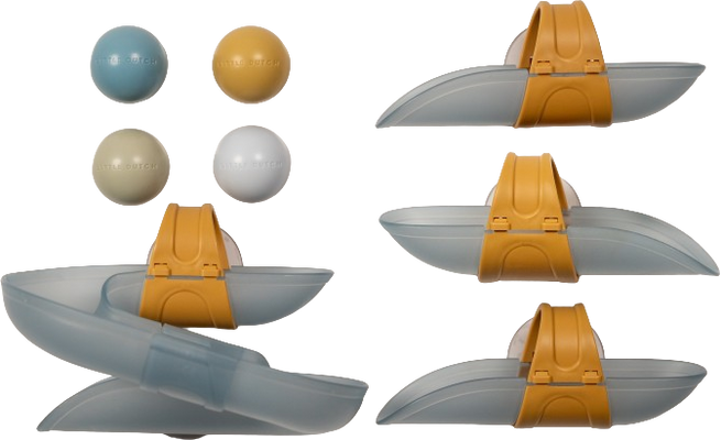 Súprava obsahuje 4 diely dráhy a 4 loptičky.