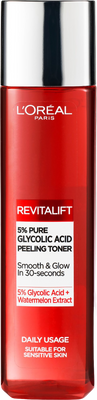 L'Oréal Paris Revitalift Pleťová voda a sprej 180 mlVšetko o produkteDoplňujúce informácieHodnotenie produktuCesta k čistej a zjednotenej pleti často vedie cez prípravky s prídavkom kyseliny glykolovej. Táto blahodarná látka je súčasťou aj exfoliačného tonika od Loréal Paris, ktorá obnovuje pokožku a redukuje pigmentové škvrny.