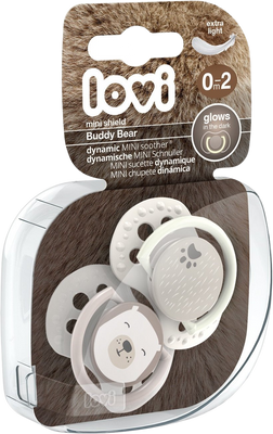 LOVI Cumlík s mini štítkom silikónový dynamický Buddy Bear 0-2m 2 ksVšetko o produkteDoplňujúce informácieHodnotenie produktuDynamický cumlík LOVI bol vytvorený v spolupráci s neurológmi s cieľom zabezpečiť prirodzený a zdravý vývoj podnebia, zubov a ďasien dieťaťa. Klinicky testované.