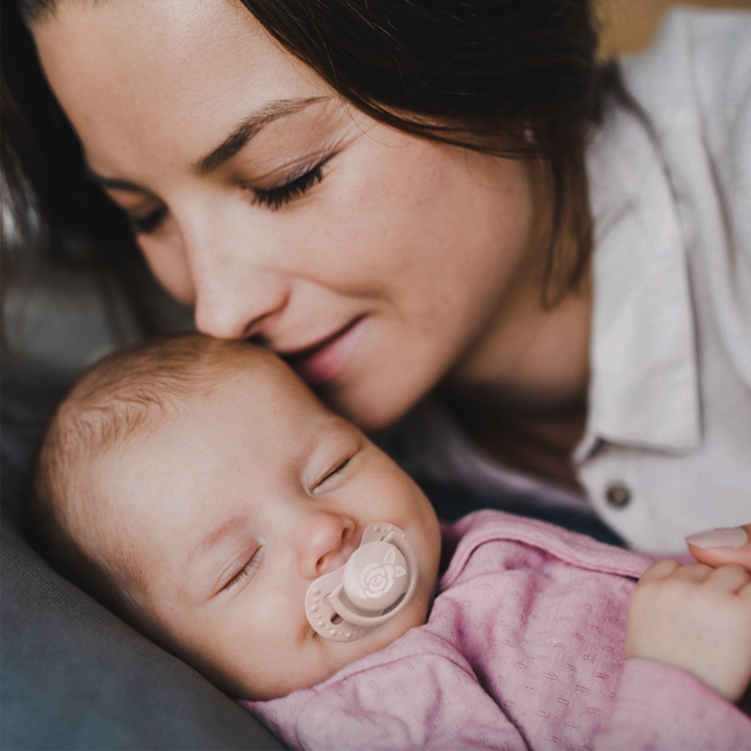 Prispôsobený malej tvári novorodencov. Umožňuje dieťaťu voľne dýchať nosom, vyrobený z bezpečných materiálov, neobsahuje bisfenol A.