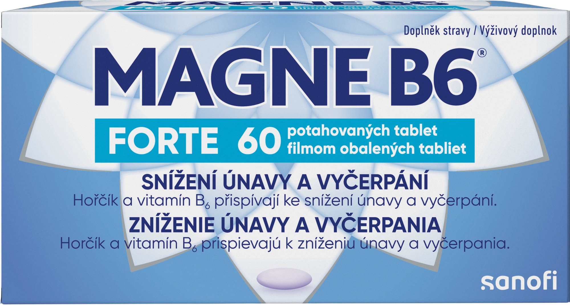 Horčík a vitamín B6 obsiahnuté v doplnku stavy Magne B6® tablety prispievajú: k zníženiu miery únavy a vyčerpania, k normálnemu energetickému metabolizmu, k normálnej činnosti nervovej sústavy, k normálnej psychickej činnosti.