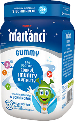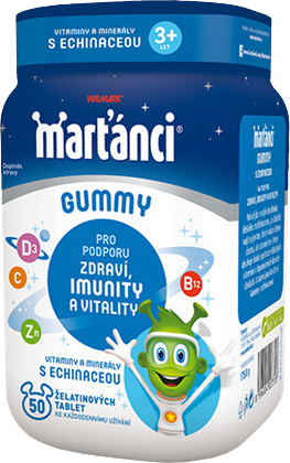 Marťánci Walmark Gummy Echinacea 20 mg želatínové tablety 50 ksVšetko o produkteDoplňujúce informácieHodnotenie produktuChutné želatínové tablety s dvoma ovocnými príchuťami (jahoda a čerešňa).