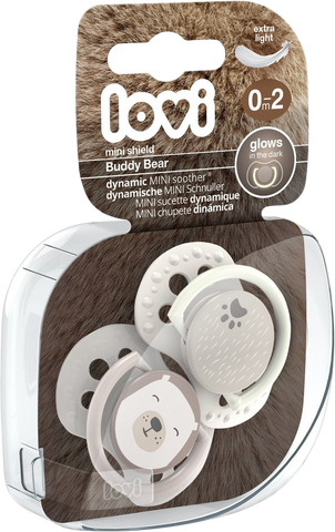 Cumlík s mini štítkom silikónový dynamický Buddy Bear 0-2m 2 ks