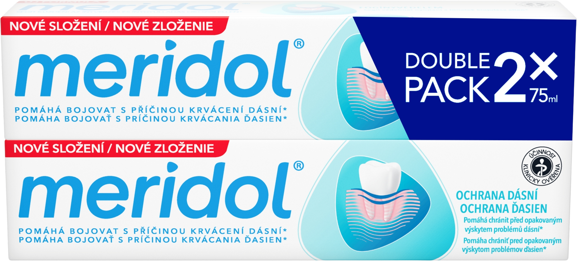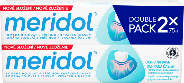 Meridol® Gum Protection Zubná pasta na ochranu ďasien 2 x 75 mlVšetko o produkteDoplňujúce informácieHodnotenie produktuZubná pasta meridol® pomáha bojovať s hlavnou príčinou problémov ďasien – baktériami v línii ďasien. Dvojitý systém fluoridov pomáha poskytovať okamžitú a dlhotrvajúcu ochranu pred baktériami. Zloženie zubnej pasty účinkuje efektívne a pôsobí jemne ako balzam, aby vaše zuby a ďasná boli čisté a zdravé.