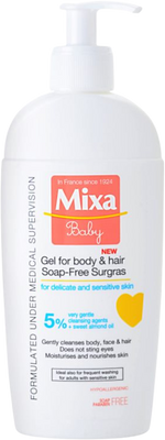Umývací gél a šampón MIXA BABY 2v1 má veľmi jemné zloženie bez mydla. Viac informácií