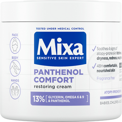 Mixa Panthenol Comfort obnovujúca telová starostlivosť aj na pokožku so sklonom k atopii, 400 mlVšetko o produkteDoplňujúce informácieHodnotenie produktuMixa obnovujúca telová starostlivosť aj na pokožku so sklonom k atopii má jemné zloženie obohatené o pantenol, glycerín a omega 6 a 9. Nemastná textúra sa rýchlo vstrebáva do pokožky. Zmierňuje pocit 4 príznakov pokožky so sklonom k atopii: svrbenie, drsnosť, suchosť.