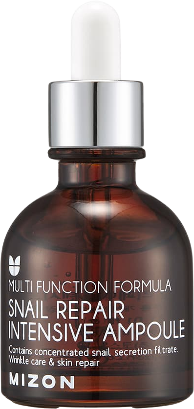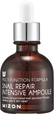 Mizon Pleťové sérum Snail Repair Intensive Ampoule 30 mlVšetko o produkteDoplňujúce informácieHodnotenie produktuToto originálne pleťové sérum je určené predovšetkým pre citlivú a unavenú pleť v dôsledku škodlivého životného prostredia. Je dokázané, že pozitívne účinkuje na vrásky a pomáha predchádzať ich tvorbe na problematických miestach. Obsahuje 80 % filtrátu slimačieho sekrétu a E.G.F. (epidermálny rastový faktor). Zjemňuje, hydratuje, pomáha regenerovať a zvyšuje elasticitu vašej pokožky. MUCÍN obsiahnutý vo filtráte slimačieho sekrétu a E.G.F. sa účinne stará o problémy vašej pleti, či už ide o jazvy po akné, suchú pleť, jemné vrásky atď. Obsahuje tiež peptidy a 5 vitamínov, ktoré podporujú pružnosť pokožky.